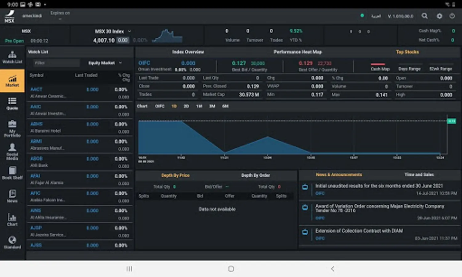 MSX app provides real -time quotes, news & announcements and tools that keep you up-to-date with market activities .