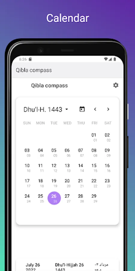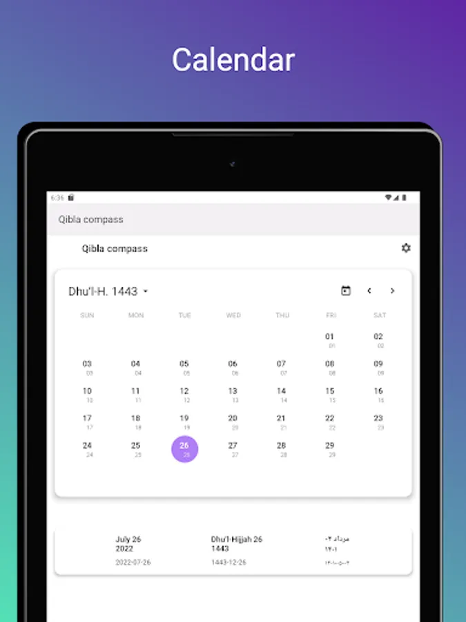 • Accurate Islamic Calendar and Hijri Calendar plus Georgian and Shamsi Calendar