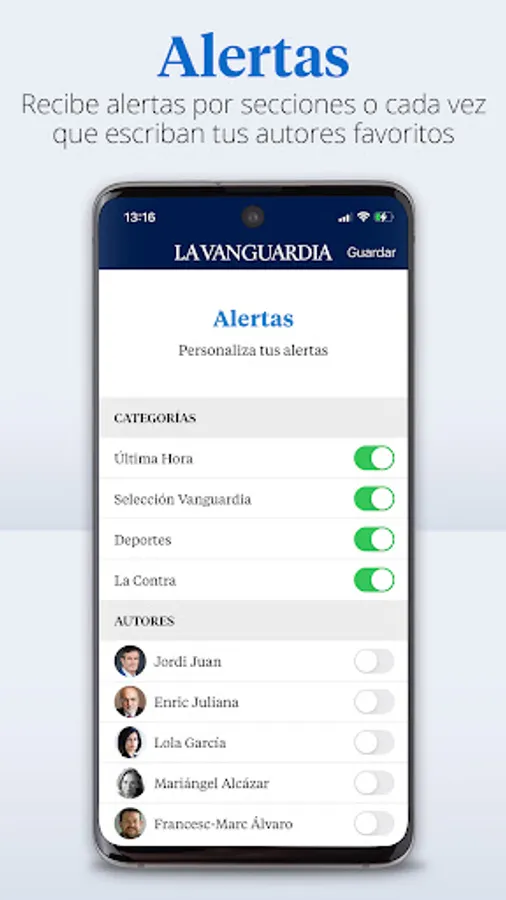 - Receive alerts with the last hour to be the first to be informed of the news. In addition to being able to receive alerts when your favorite editor publishes a new article