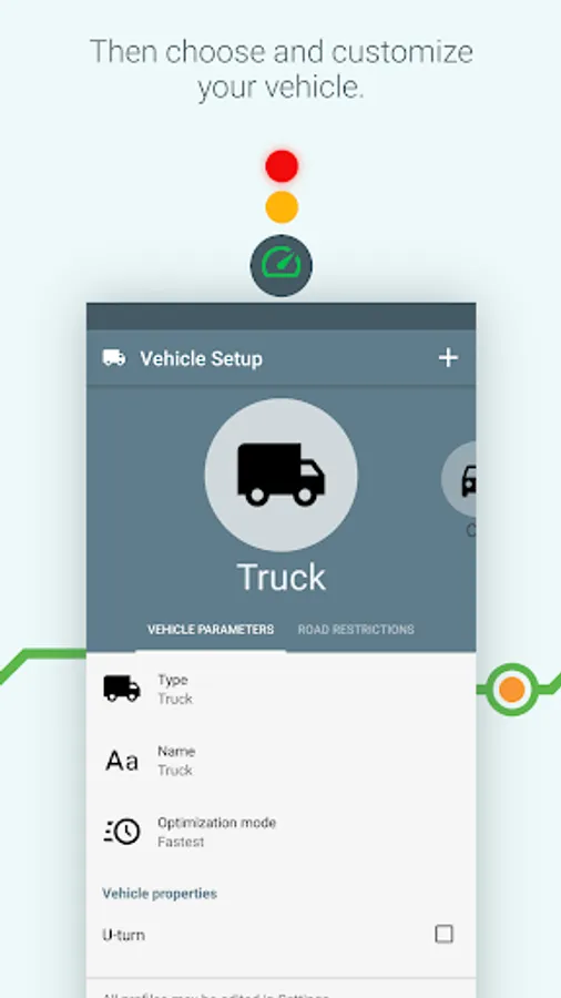Parameters, like maximum speed, gross weight, axle load, total length, width and height, road restrictions, and more can be adjusted so that they match your vehicle exactly making navigation accurate and reliable.