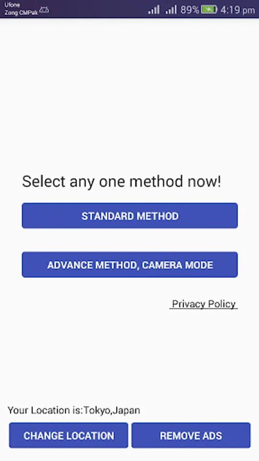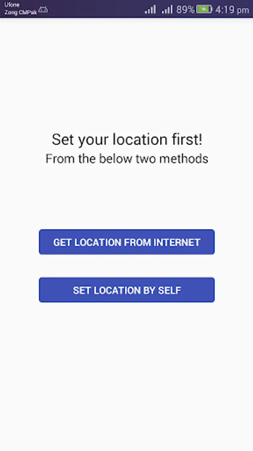 2. Go to settings from menu and select your location method either using GPS or Search your city name in search bar to select it from cities database or list using standard manual method.