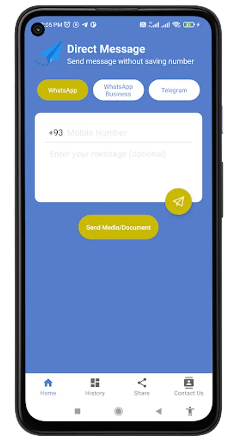 Direct Message is app to send whats app without saving a number. Users can send a message on Whats App without saving a number.