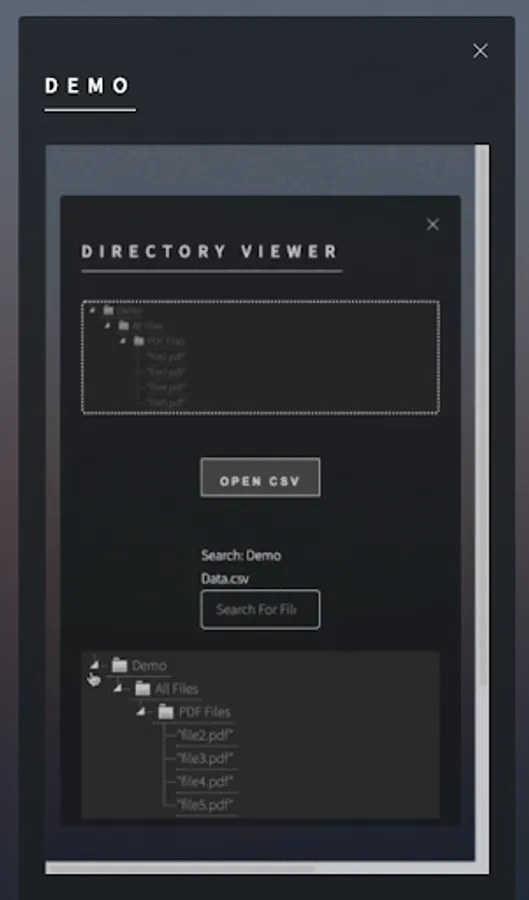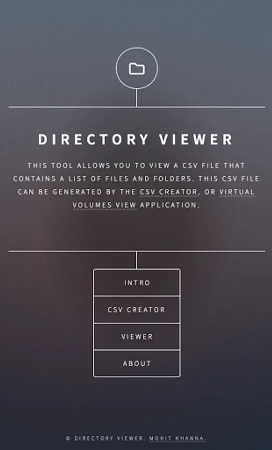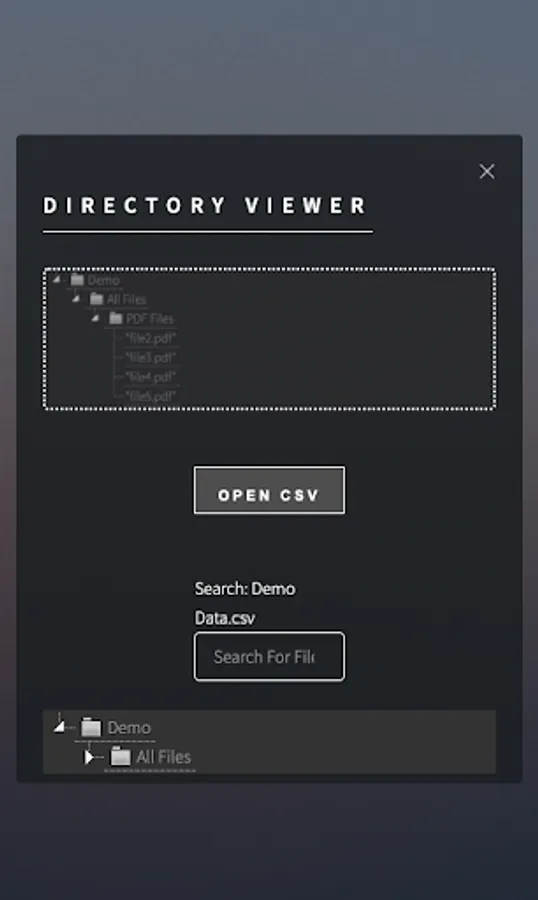 With this viewer you can view a CSV list of directories and files. You can generate this list on your Windows, Mac or Linux, and view this CSV file from this app.