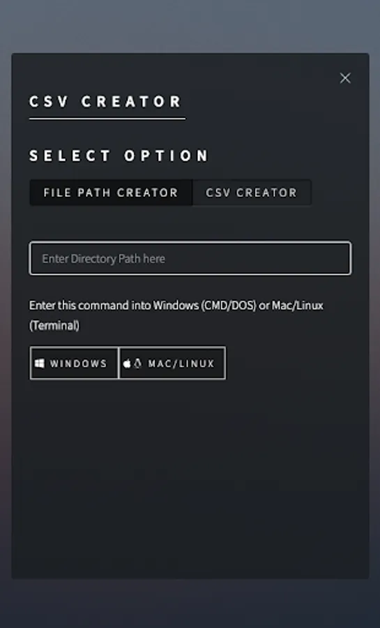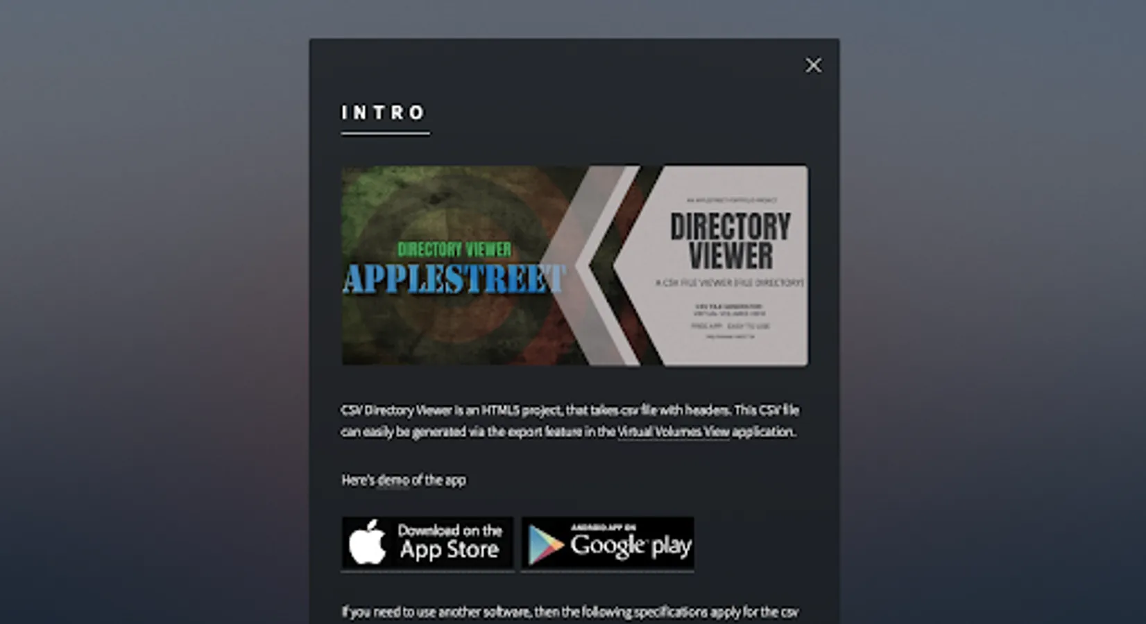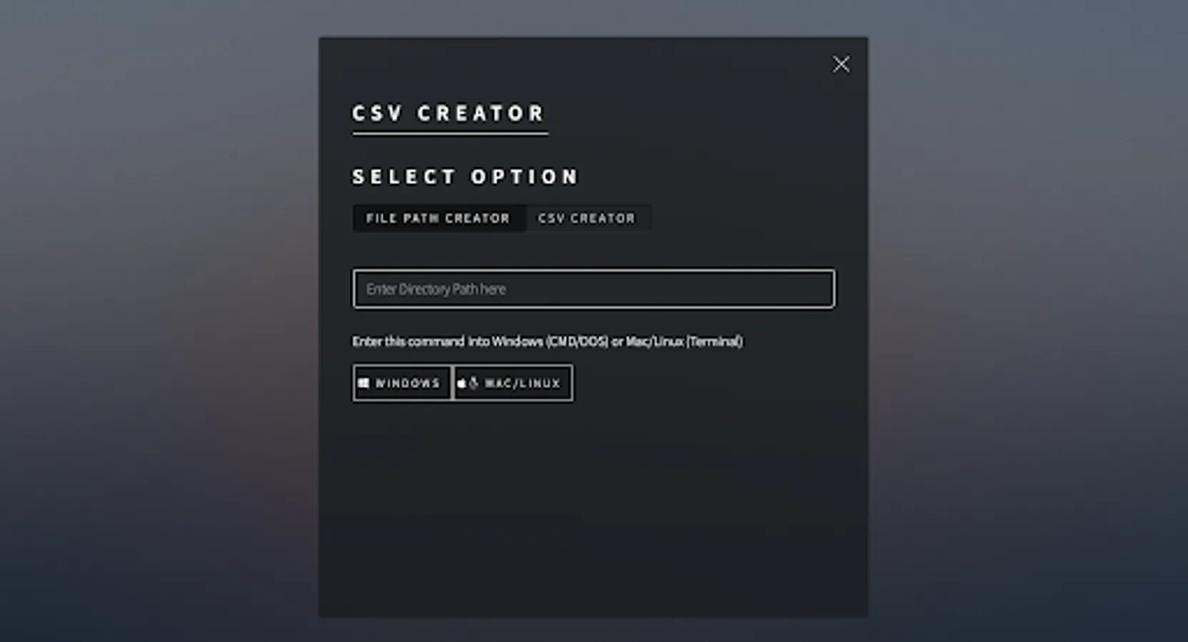 You can also use this app to create a CSV for viewing on the app. This pro version includes a command line tool to create file paths for your directory, and then you can load this file list text file to the app to create a CSV file that can be viewed with the Viewer in both the Free and Pro versions.