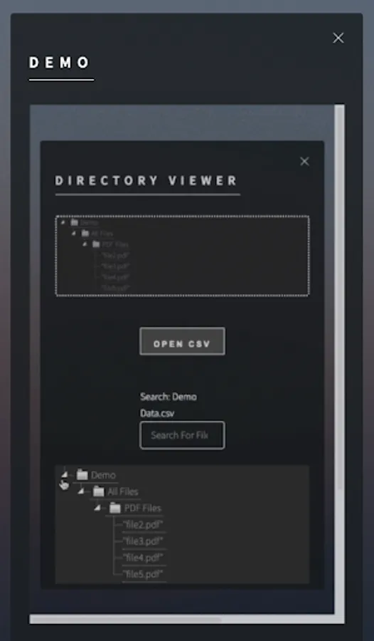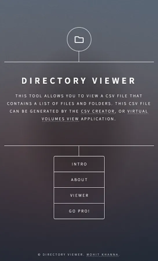 With this viewer you can view a CSV list of directories and files. You can generate this list on your Windows, Mac or Linux, and view this csv file from this app.