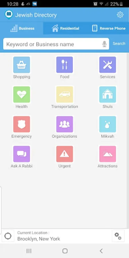 A phone directory beyond the books. From the pioneering team of the online Jewish directory comes this brand new mobile innovation, the Jewish Directory app. Simply put, this app puts the official Jewish directory, along with all the indexing power weve perfected since 1998, in one accessible place your smartphone or tablet. Finding information on your neighbors and friends, as well as pulling up listings of local Jewish businesses, no longer requires you to pound the pavement or thumb through thick print volumes. All that's involved is a simple search box, a short dance of the fingers, and a lightening-fast search engine that spits out results as soon as you hit the enter button. Weve got their number: - Residential Listings - Business Listings (Hundreds of Categories) - Jewish Organizations - Shuls - Mikvahs - Kosher Restaurants Worldwide - Reverse Phone Lookup The time has come to say No, thanks to having multiple copies of numerous phone books stocked at home and at the office. Opt instead for the Jewish Directory app. Why? Because your phone is actually the most logical tool to provide you access to the listings you need on a daily basis. Just think about it: search, dial and connect, all with the same device. Make the better call. Download the app today.