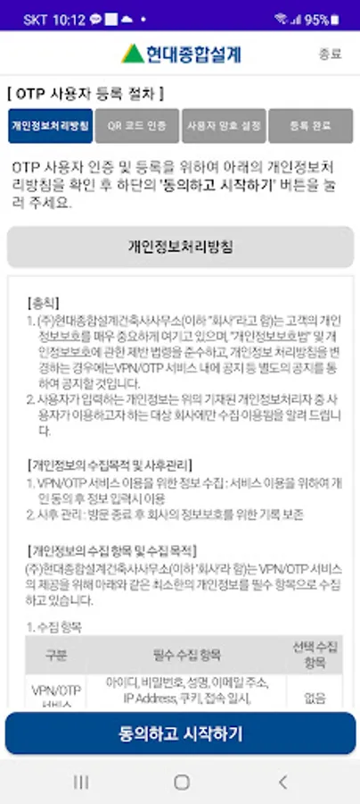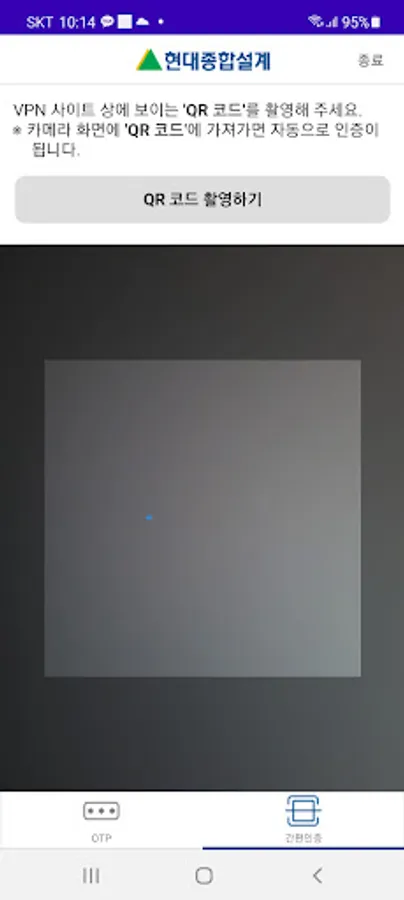 To access Hyundai Engineering & Construction's virtual private network (VPN), you must first register as a user after checking the email sent by the administrator, and proceed with the registration procedure by recognizing the QR code for user registration.