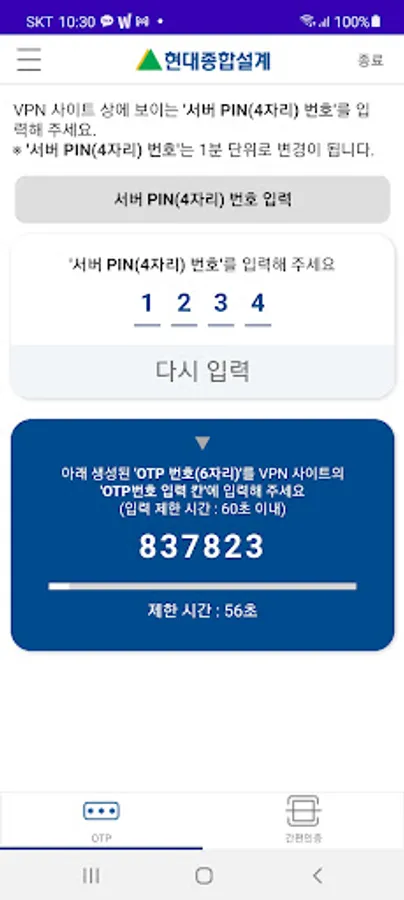 - Enter the randomly generated OTP number (4 digits) on the VPN service screen of your PC.
