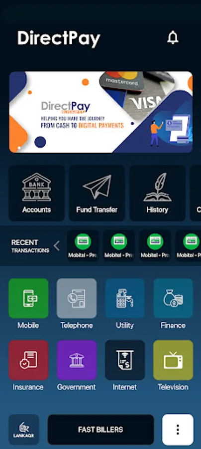 DirectPay is the solution to facilitate low value transactions via LankaPay CEFTS/JustPay network using smart phones between customers and merchants eliminating high cost to third party payment verification agencies and expensive equipment. Our product complies with the BSS (Baseline Security Standards) for mobile applications, a common baseline security standards for developing mobile based applications for the financial sector organizations.