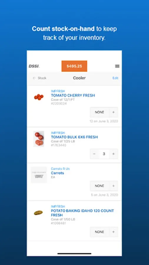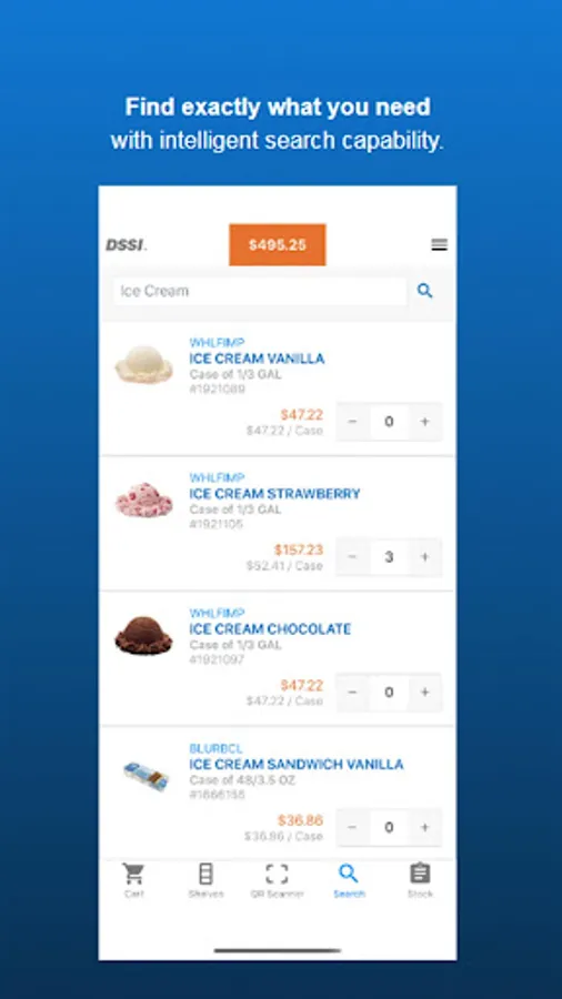 The DSSI Mobile app allows you to quickly build an order anywhere – in the storeroom or in the kitchen.