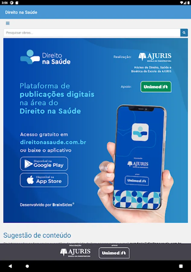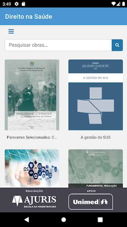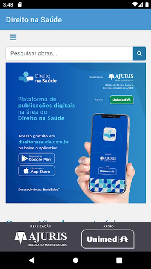 The content of this platform is selected by the members of the AJURIS School's Law, Health and Bioethics Center, from free and open access publications that institutions working in the health area publish, without interference or guidance from the supporter.