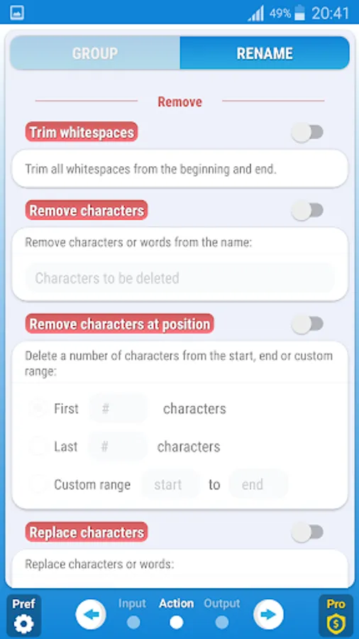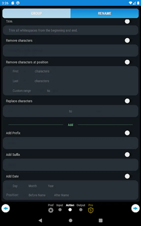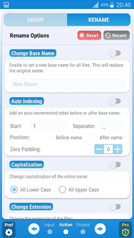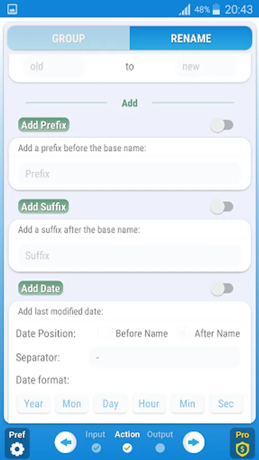 Bulk Rename & Group is a free tool which allows you to easily rename and organize all your files from internal or external storage in a single operation. Batch rename and group your selection of files with a large variety of features.