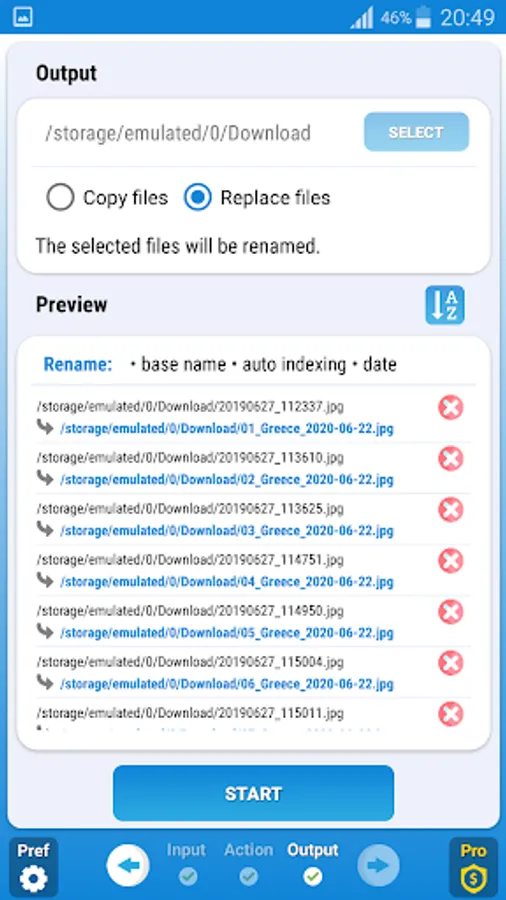 Select the output path of the new files and see a preview of the new files before starting the operation.