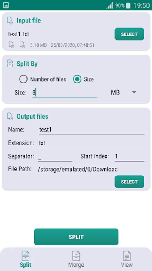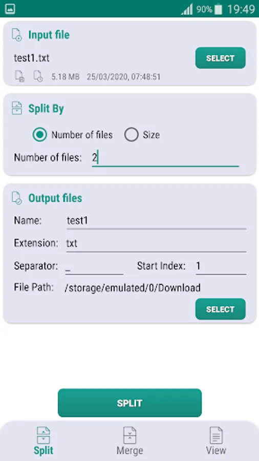File Splitter & Merger is an Android tool which allows you to split any file into smaller files or merge multiple files into one.