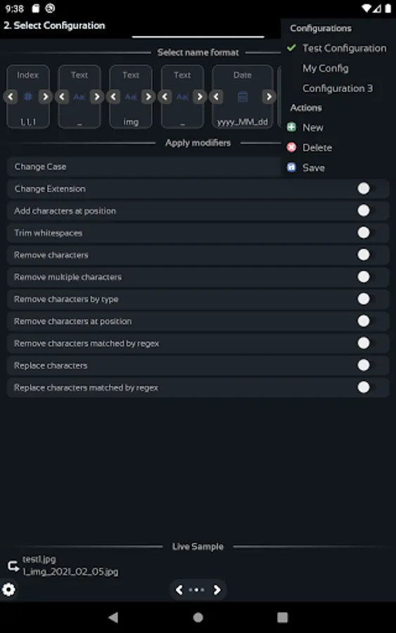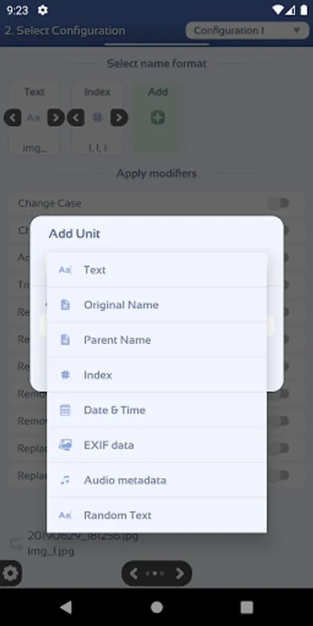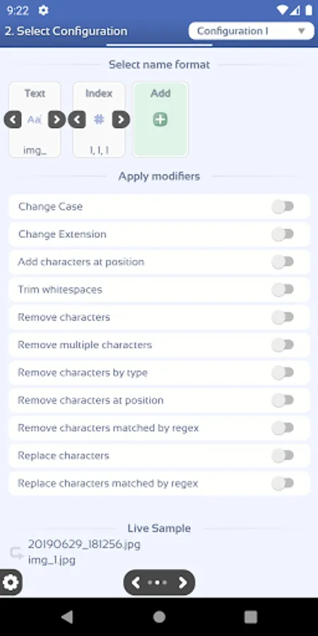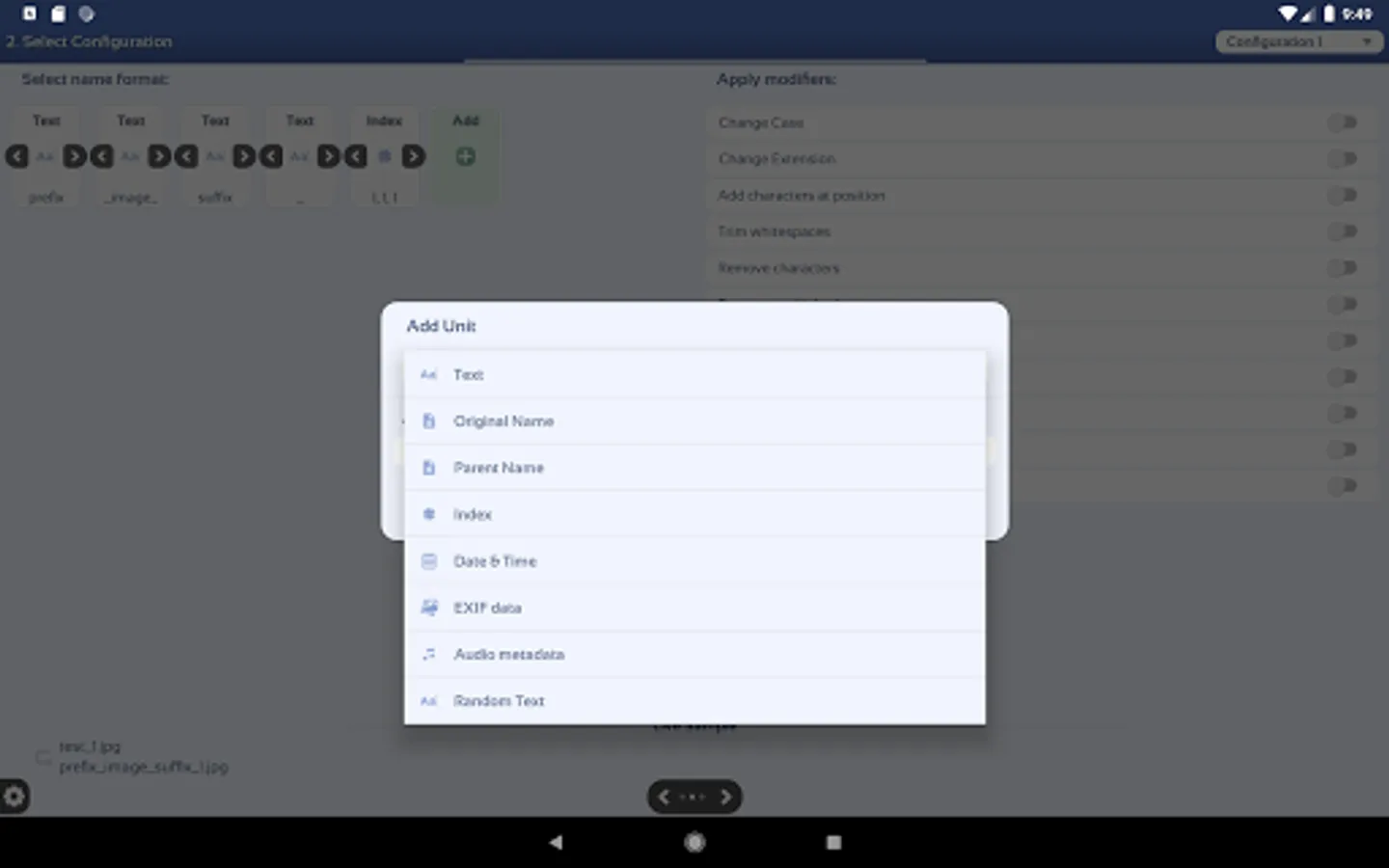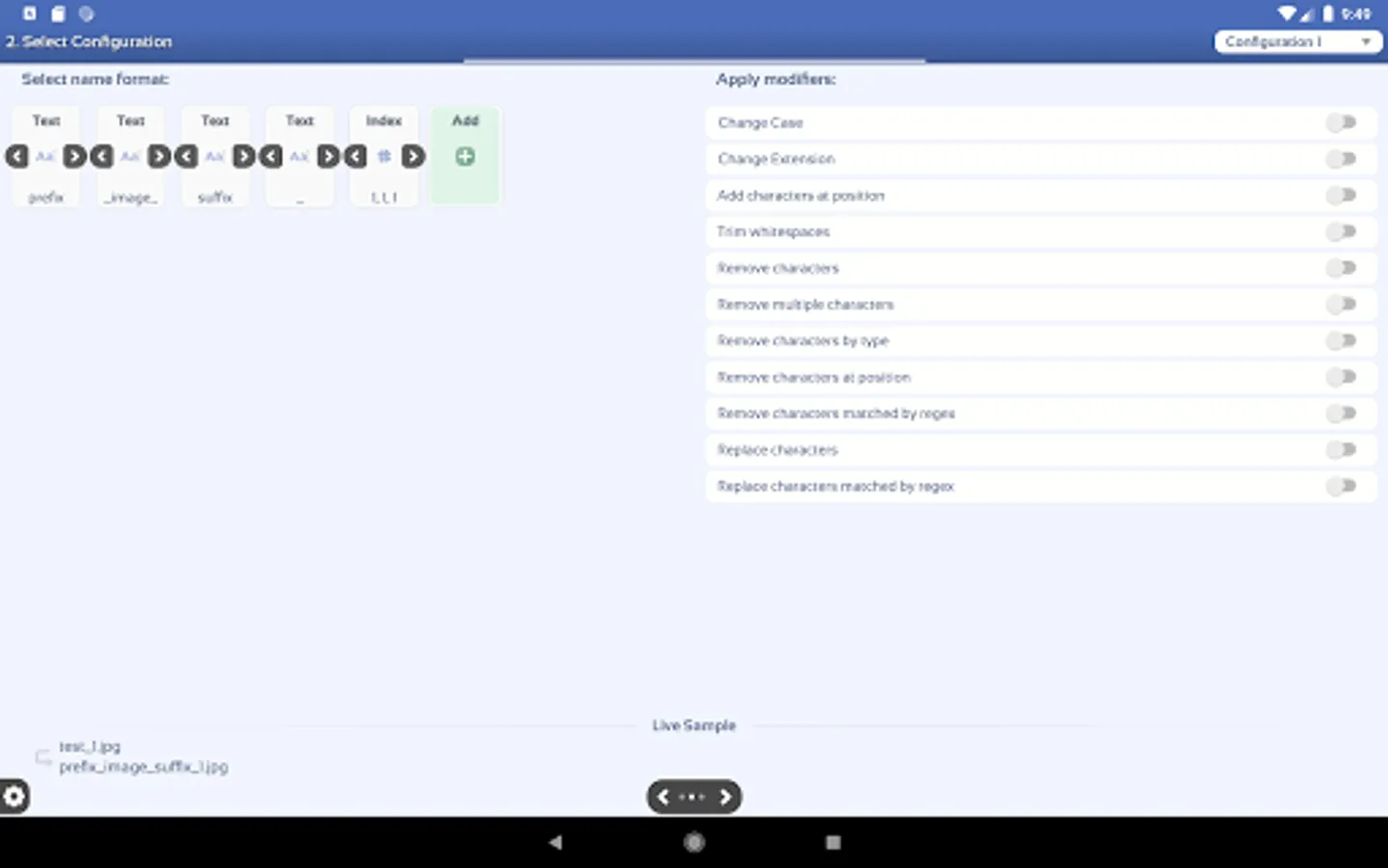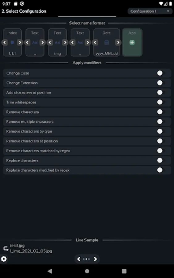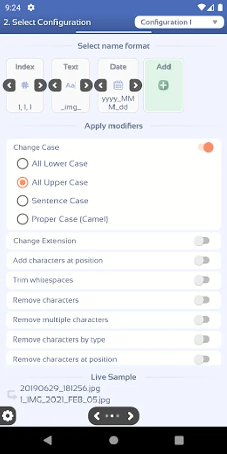 ✓ Original Name - Adds the file's initial name. This is the starting point for every configuration.