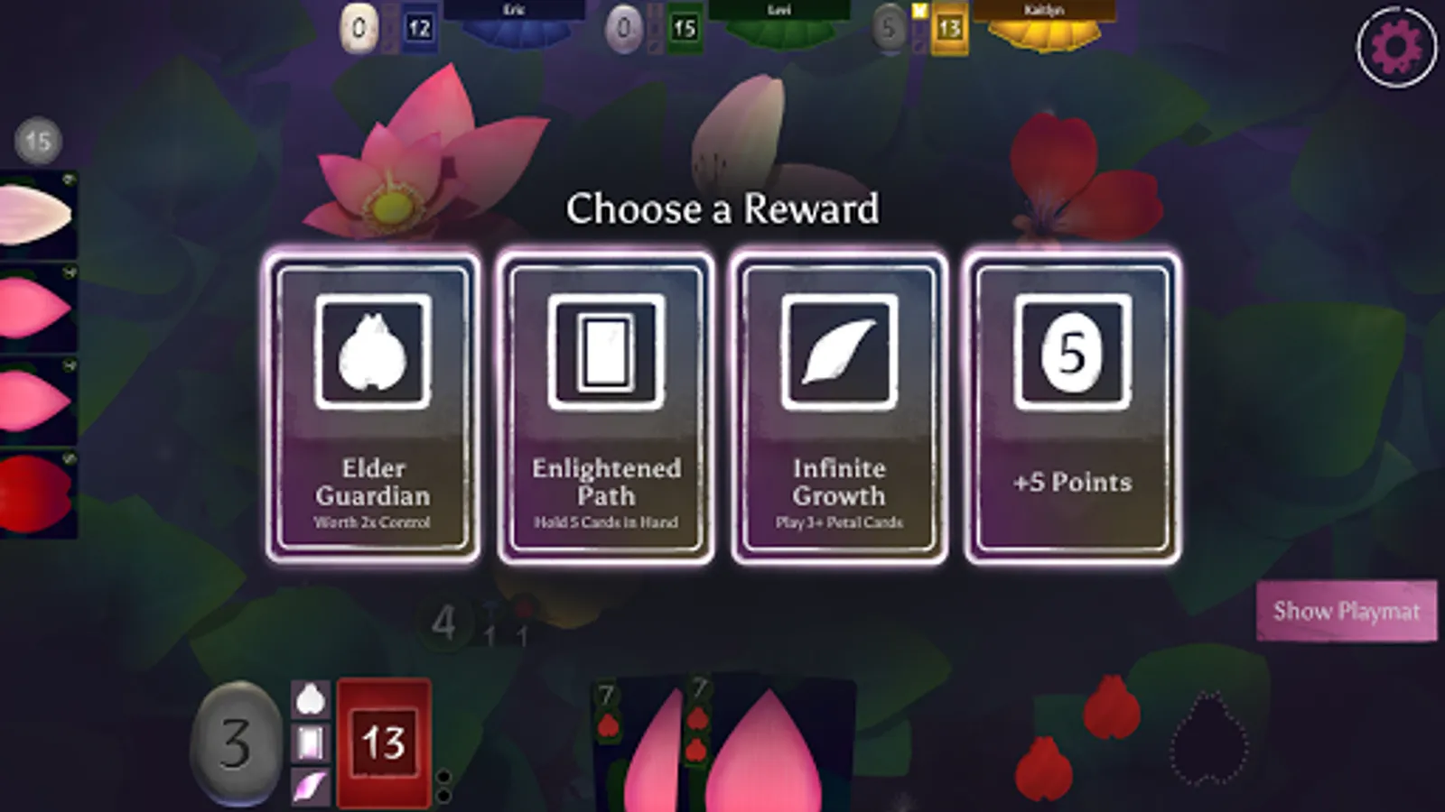 In Lotus, players take turns adding petals and utilizing guardians to control and nurture these mystical flowers to maturity. Collect special abilities as you grow to aid you on your quest, and gain wisdom points for each completed bloom. At the end of the game the player with the most wisdom points will emerge from the garden that much closer to enlightenment!