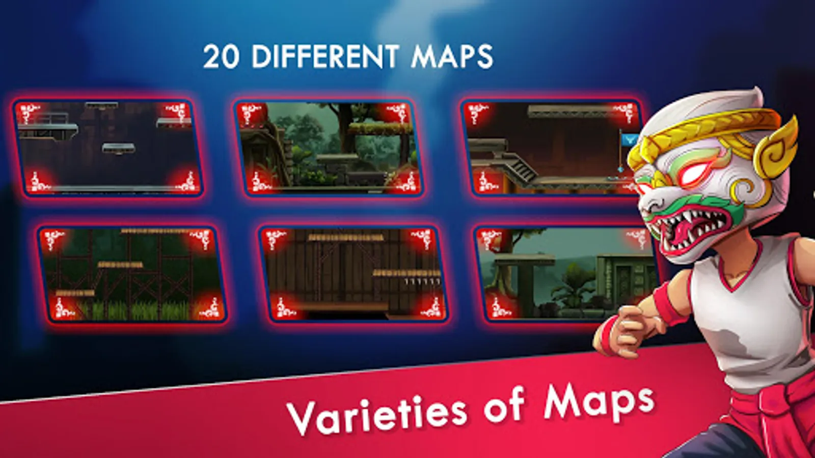 Bokator Warrior, Muy Thai Warrior, Kung Fu Master, Warrior without Shadow, Samurai Master, Demon Slayer, Hanuman vs Yak, Iron Arm, Cyborg, Captain Cambodia,.etc you name it. There are more than 300 million customizable of your face. So, no fighters are the same. Build your unique Hero and show the world what you’ve got.