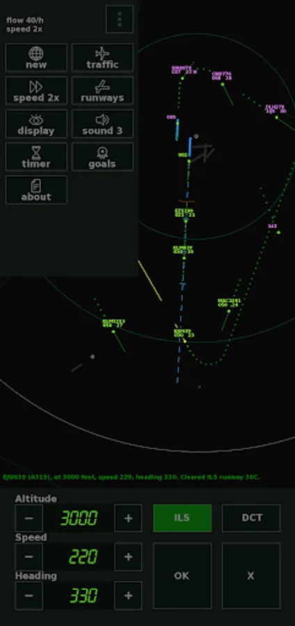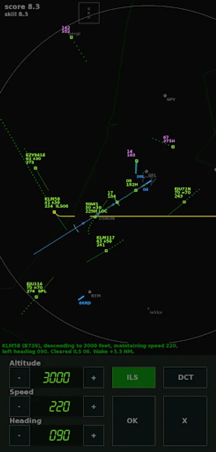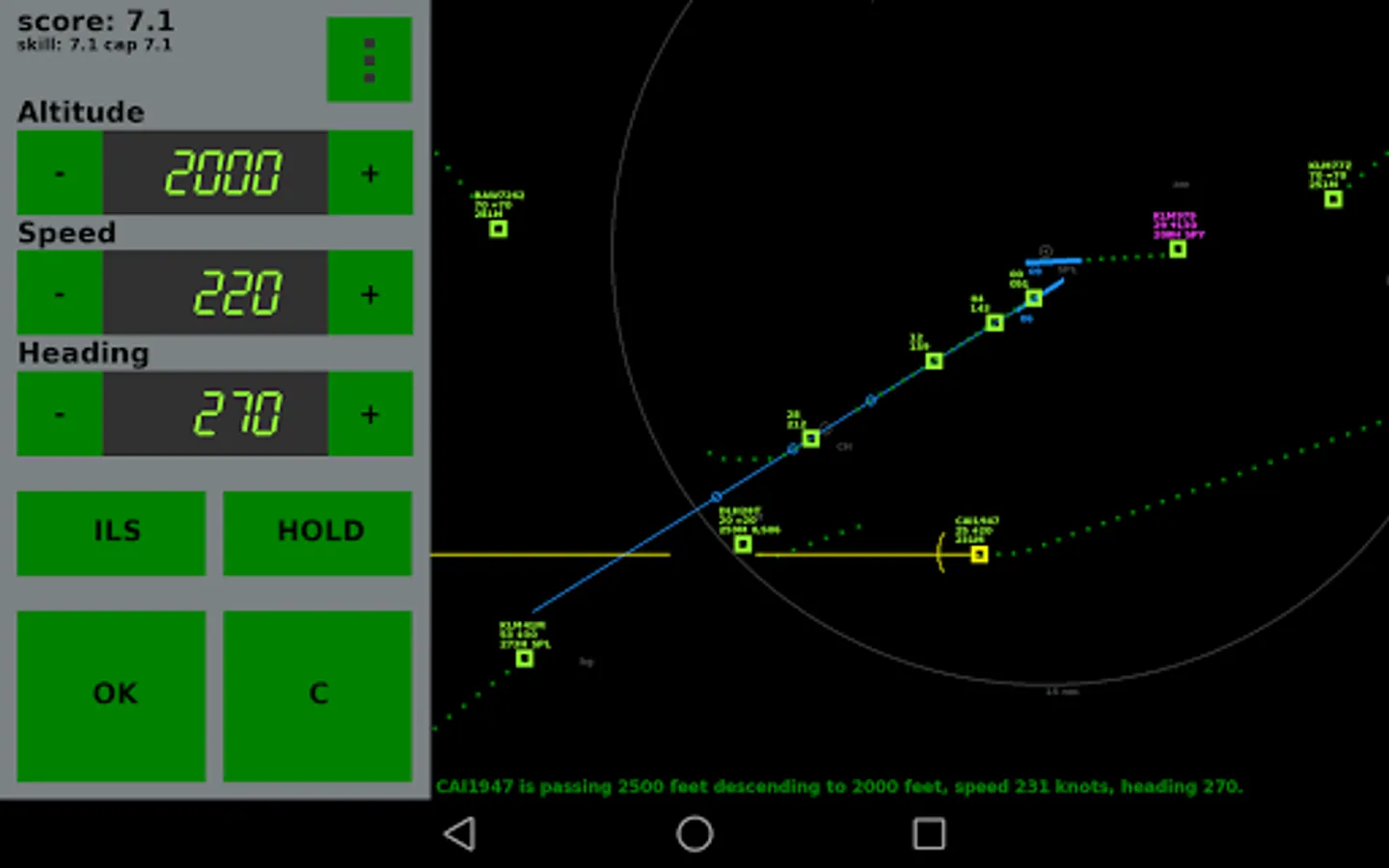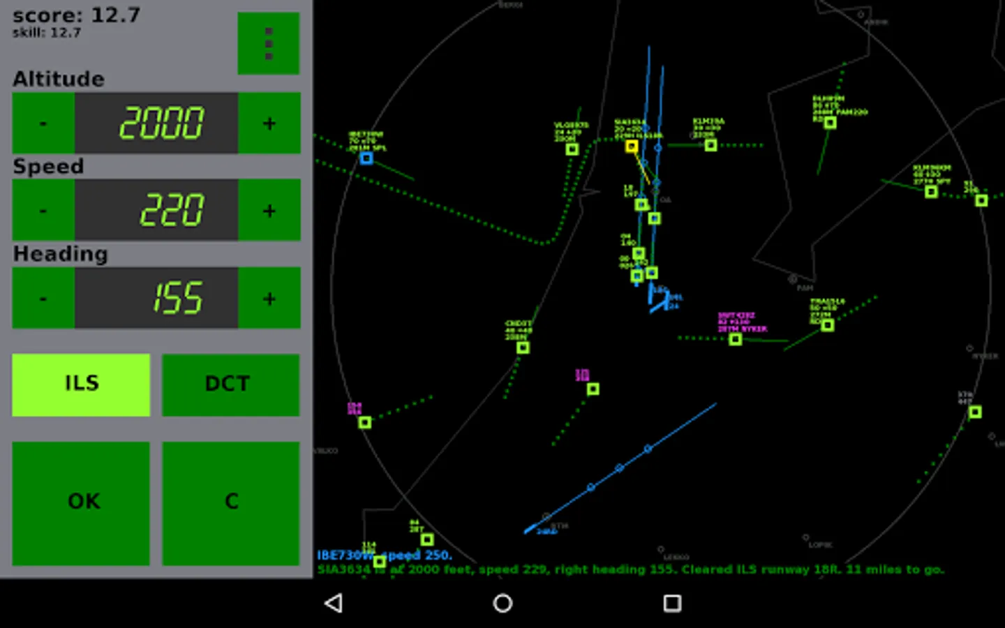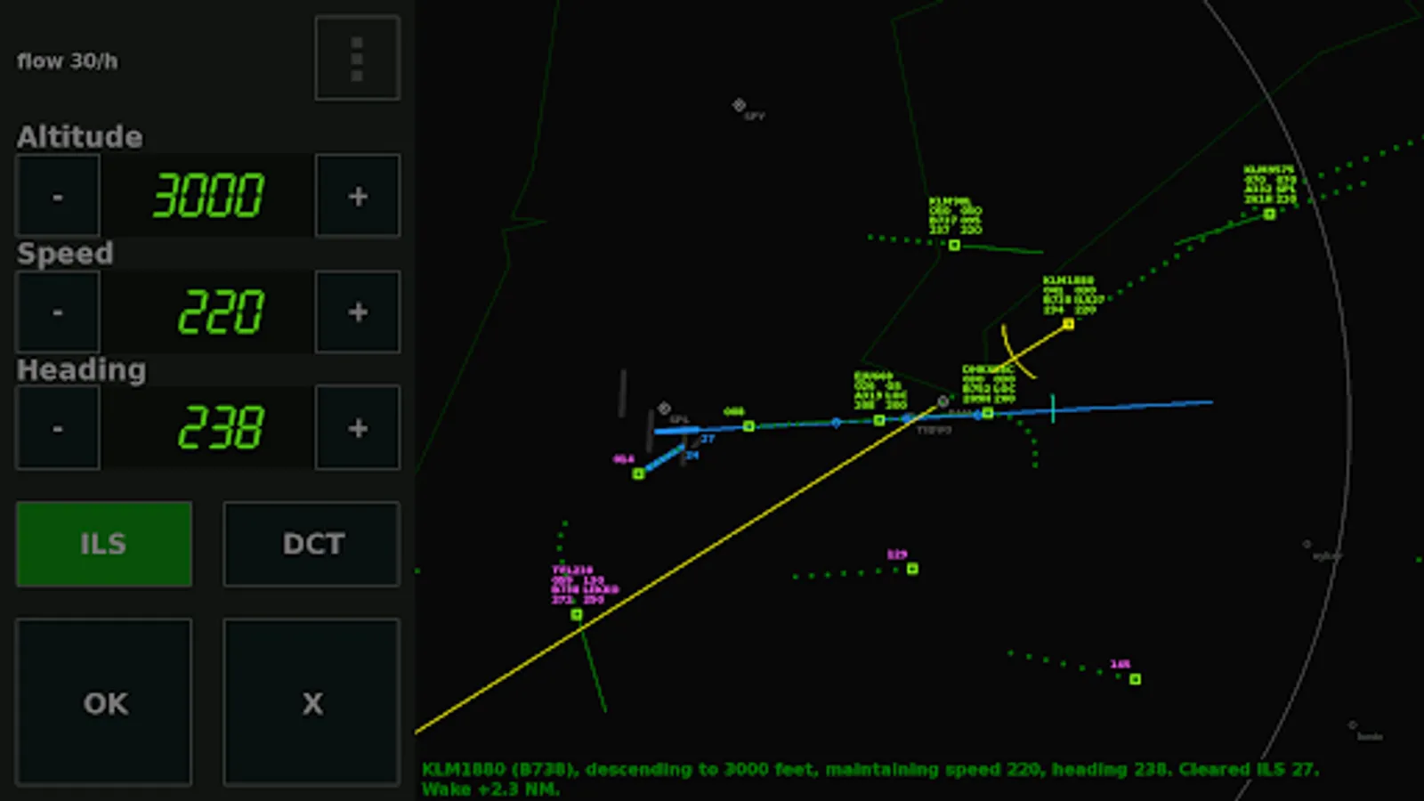 In this simulation game, you are the air traffic controller at the radar of a busy airport. The goal is to guide the airplanes safely towards the runway (using ILS approaches) to get a high score. If you make no errors, the number of planes you have to control gets greater and greater. How many flights at a time can you manage?