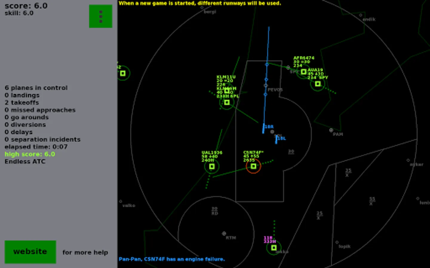 Endless ATC is a realistic and easy to play radar simulator. As an approach controller at the radar of a busy airport, you guide as many planes as possible safely to the runways. This version has multiple airports and realistic features that add to the challenge: