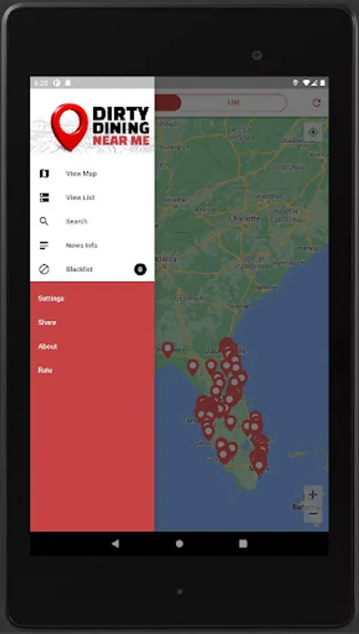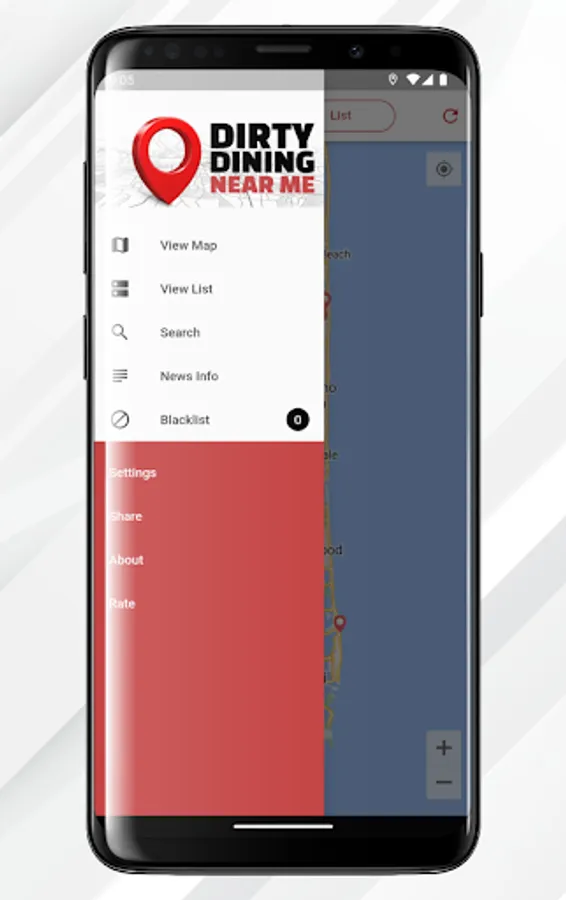 This app exposes nearby restaurants that have 'unsavory' food & sanitation inspection results. View a list or detailed map with markers for every restaurant near to you that you may want to avoid because it has a very low score on it's latest inspection. Search for restaurants by name or keyword. Add any restaurant to your own personal blacklist. Now you can have an extra layer of security by checking with the Dirty Dining Near Me app before eating out.