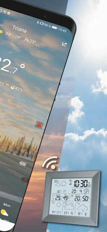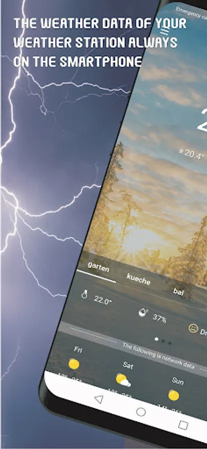 Owners of a DirektWetter WD 2000 weather station can additionally display the data of their weather station on their smartphone. So you always have the weather situation, for the location of your weather station, in view: The app offer the same information as the display (local temperature and humidity from a total of 4 possible sensors, professional weather forecast data for 4 days for the location of the weather station) of their weather station and provides them with additional features, such as alarms, graphical display of the progressions and more.