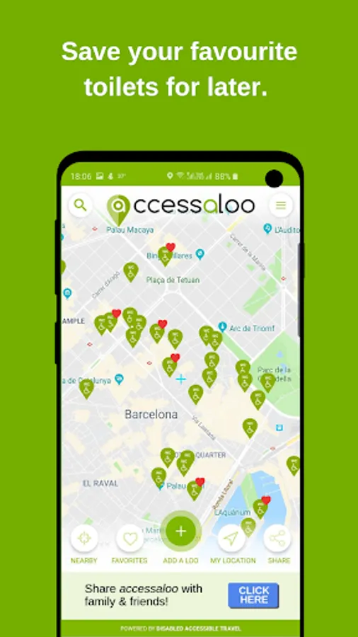 accessaloo is your sidekick for finding and saving accessible toilets near you. Wherever you are and whenever you need one.