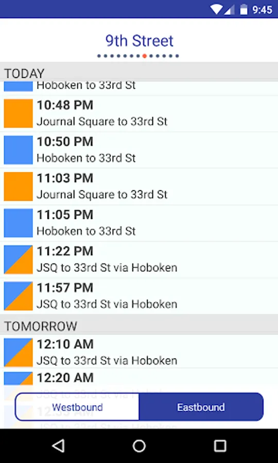 Path Schedule shows all trains that will travel through a given station today and tomorrow, as well as the last 3 trains for either eastbound or westbound trains. You can swipe between PATH stations or tap the station name to pick from a list of stations.