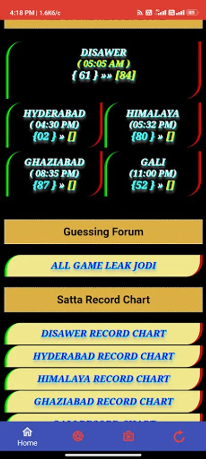in this app you can find official and original result of disawer satta king and other original satta market result.