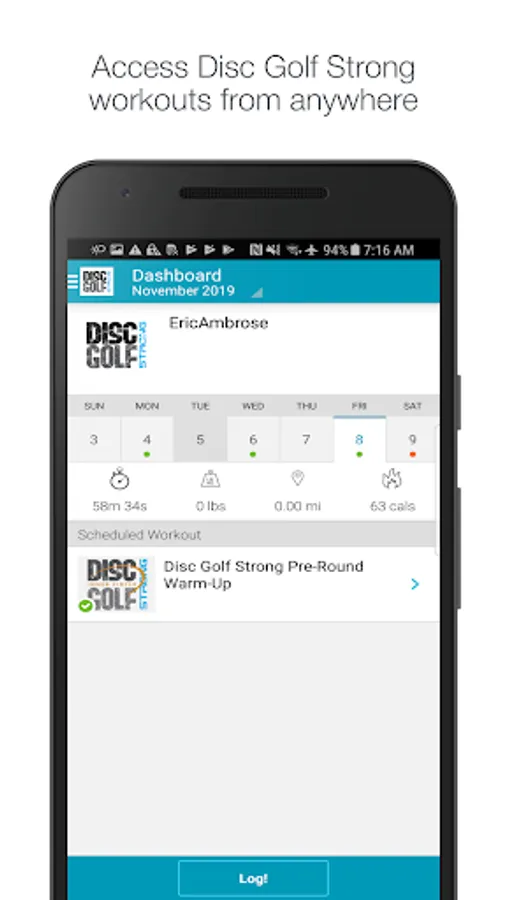 Log your Disc Golf Strong workouts from anywhere with the Disc Golf Strong workout logging app! View your completed and upcoming scheduled workouts. Track your progress and get the most out of your Disc Golf Strong workouts!