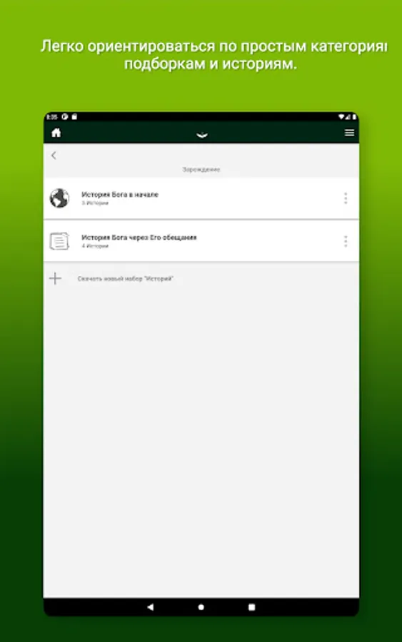 - An ever-expanding set of themed stories about important life issues such as love, marriage, hope, persecution, faith, and more.