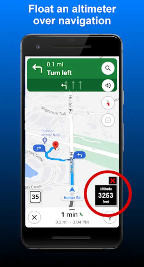 ● Floating Altimeter that you can place over your navigation app or any other app.