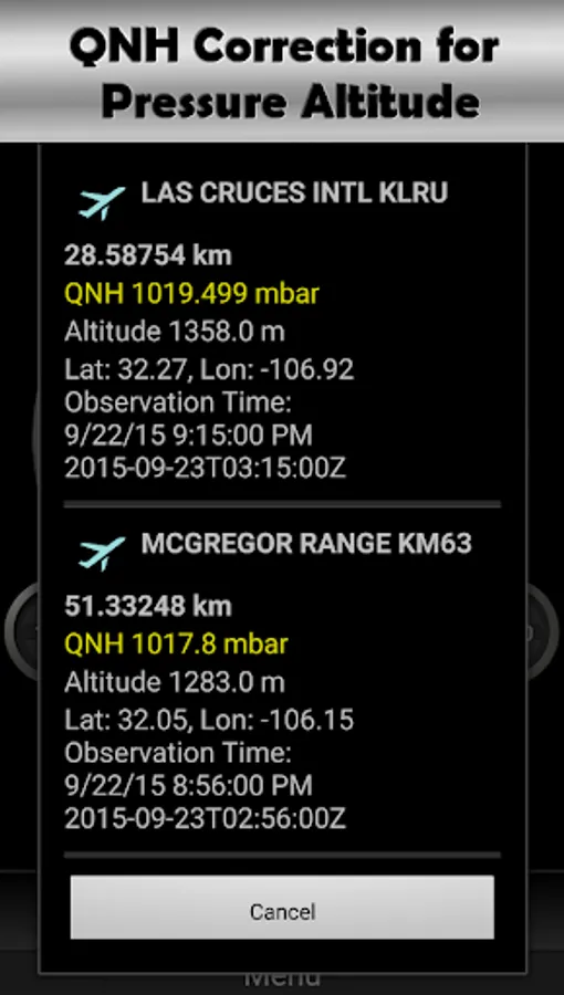 1. Calibrate to the nearest airport. Choose your airport from the app's dynamic list of nearest airfields. Airfield data is usually updated every 20 - 30 minutes.