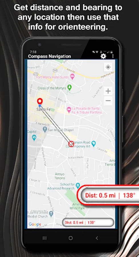 To assist with compass orienteering, there is a map with dynamic measurement tools that allow you to easily get the true heading and distance to any target from your current location.