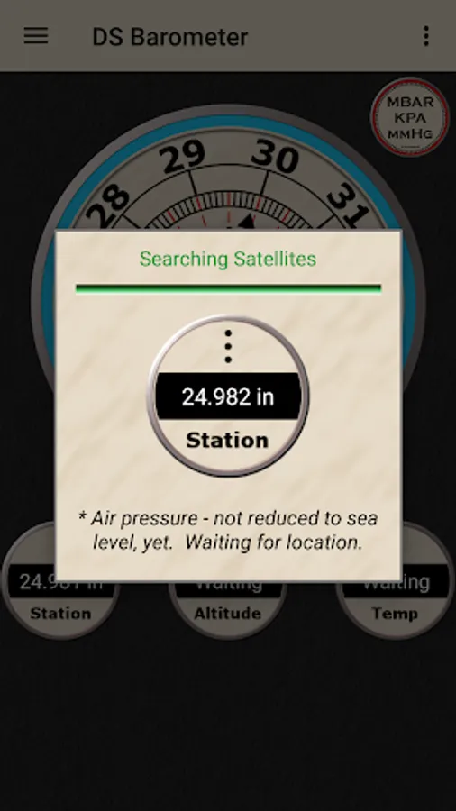 This barometer is more than a simple air pressure reader. It has the advantage of calculating the mean sea level pressure at your location. Mean sea level pressure is the pressure value reported on weather maps and is a standardized pressure value that allows you to compare the atmospheric pressure at different locations regardless of the temperature and altitude. This type of comparison is used to make meaningful weather predictions. In order to make this calculation, the application will require your permission to access your location.