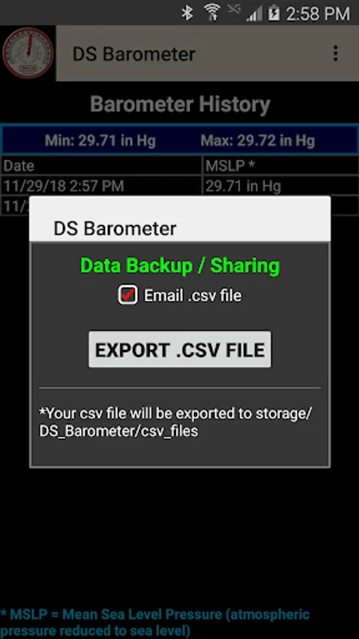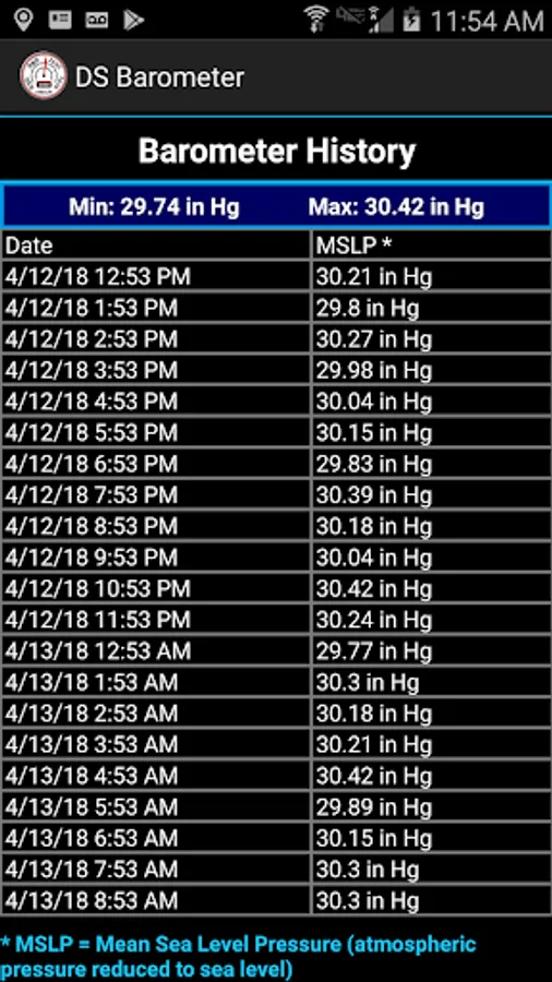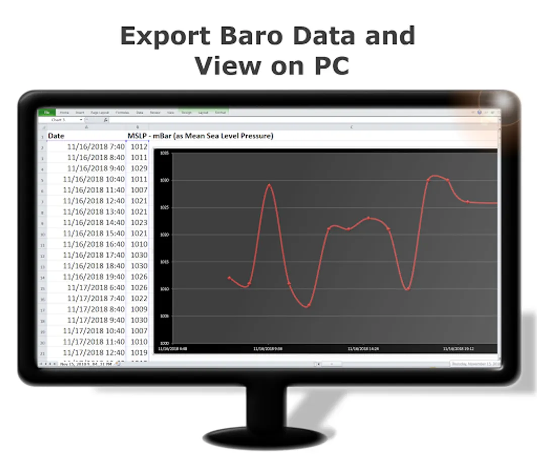 ★ Free background atmospheric pressure monitoring with graphs and charts. Recorded data can be exported as a .csv file so you can review it in a spreadsheet program on your computer.