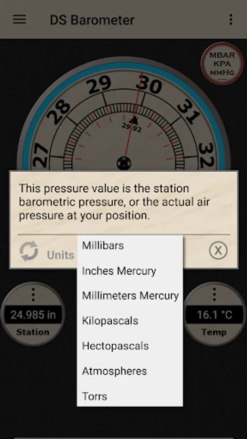 DS Barometer is a handsomely crafted barometer and air pressure recorder for Android devices with or without a barometric pressure sensor.