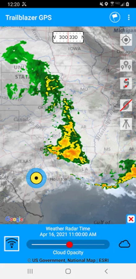 • Weather Satellite Layer (visible clouds and infrared imaging).