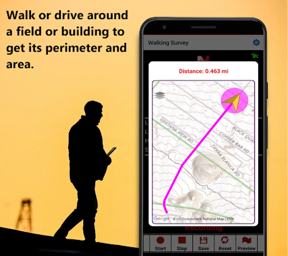📏 Get land area and perimeter for any shape field by walking or driving its perimeter.