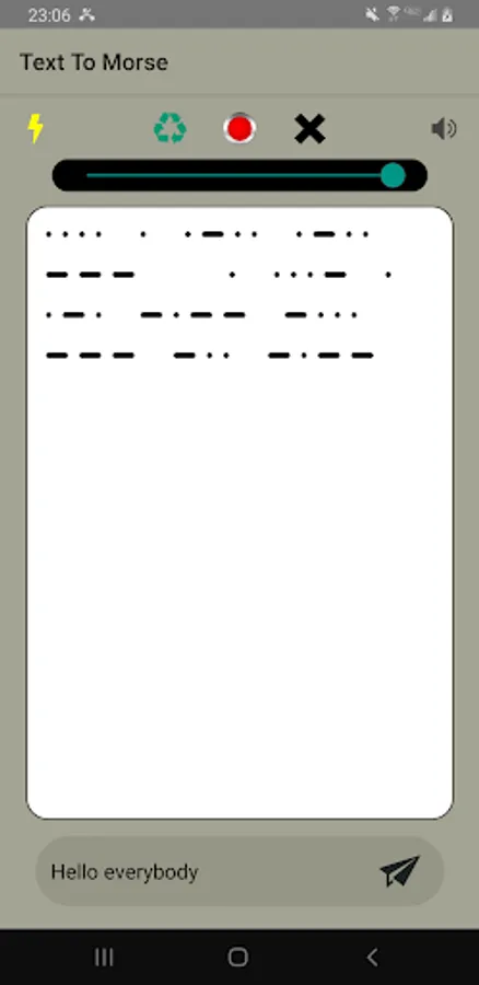 The text to Morse feature allows you to easily set the transmission rate. Adjust the number of words per minute by setting the length of dots and dashes and the duration of pauses between words and characters.