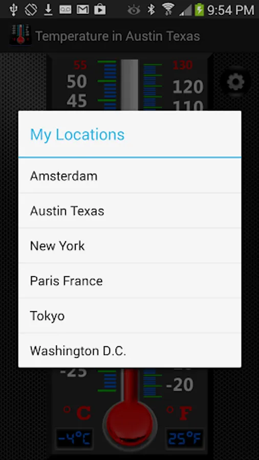 All devices will show the temperature outdoors at your location or at any location world-wide. Construct a list of your favorite locations and watch the mercury rise or fall according to the laws of real mercury column physics.