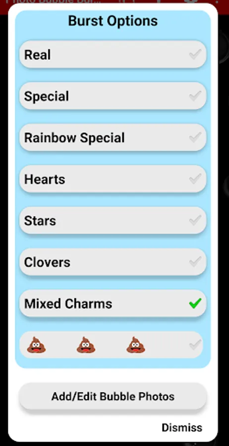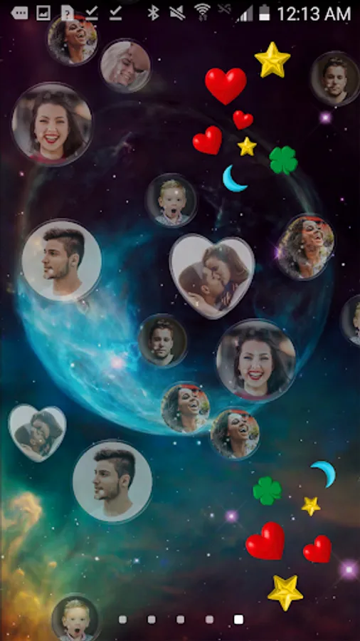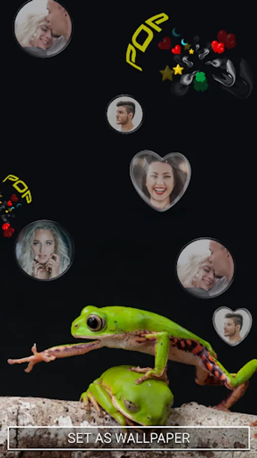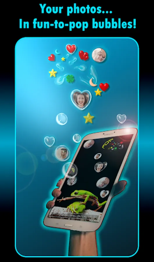 Let the bubbles burst in the background or pop them with your fingers and create beautiful explosions of bubbles, hearts, stars, moons, poohs, and charms.
