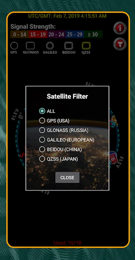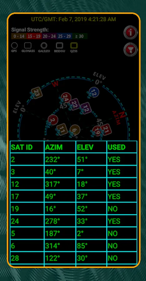 * Galileo, Beidou, IRNSS and QZSS satellites may be visible on some devices manufactured after 2017 and must be running Android 7.0 or later.