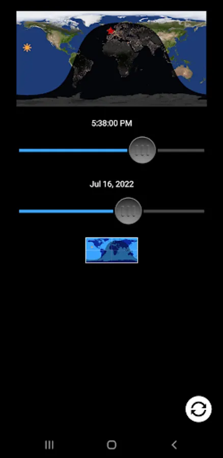 - Day and night map with sliding day-night terminator showing where it is day and where it is night.