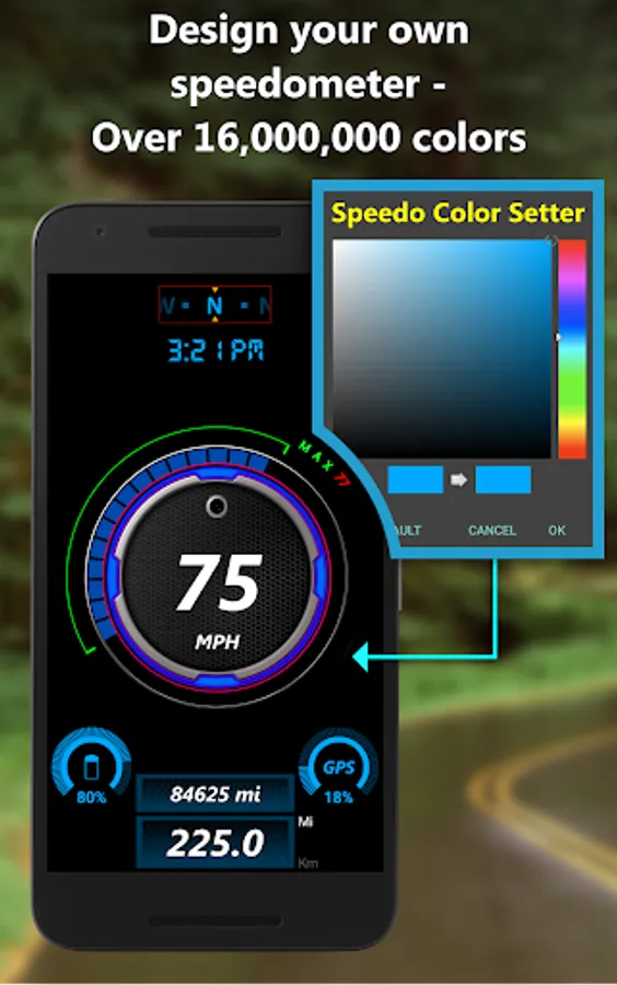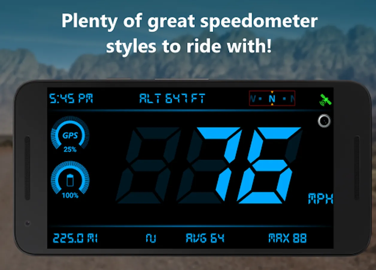 ✔️ Every speedometer style goes full-screen in both portrait and landscape modes- even on tablets.