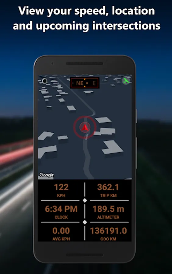 ✔️ Driving maps styled for day and night use show all your speedometer stats and your location as you are moving.