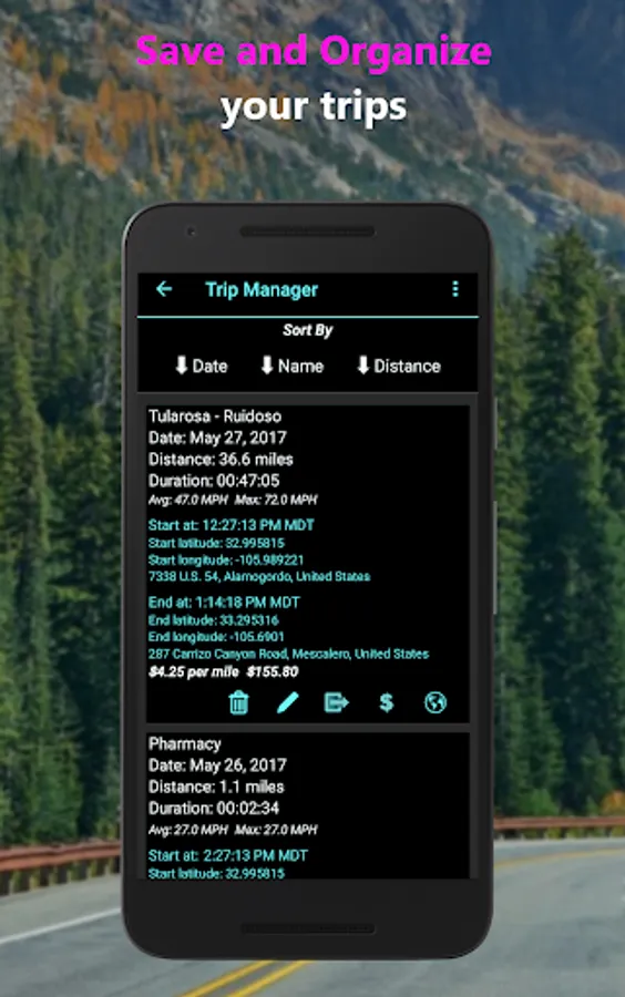 ✔️ Trip charge meter. Apply charges for distance traveled. Print out the trip charges as a csv file and submit them to your employer for travel reimbursement or for tax purposes.