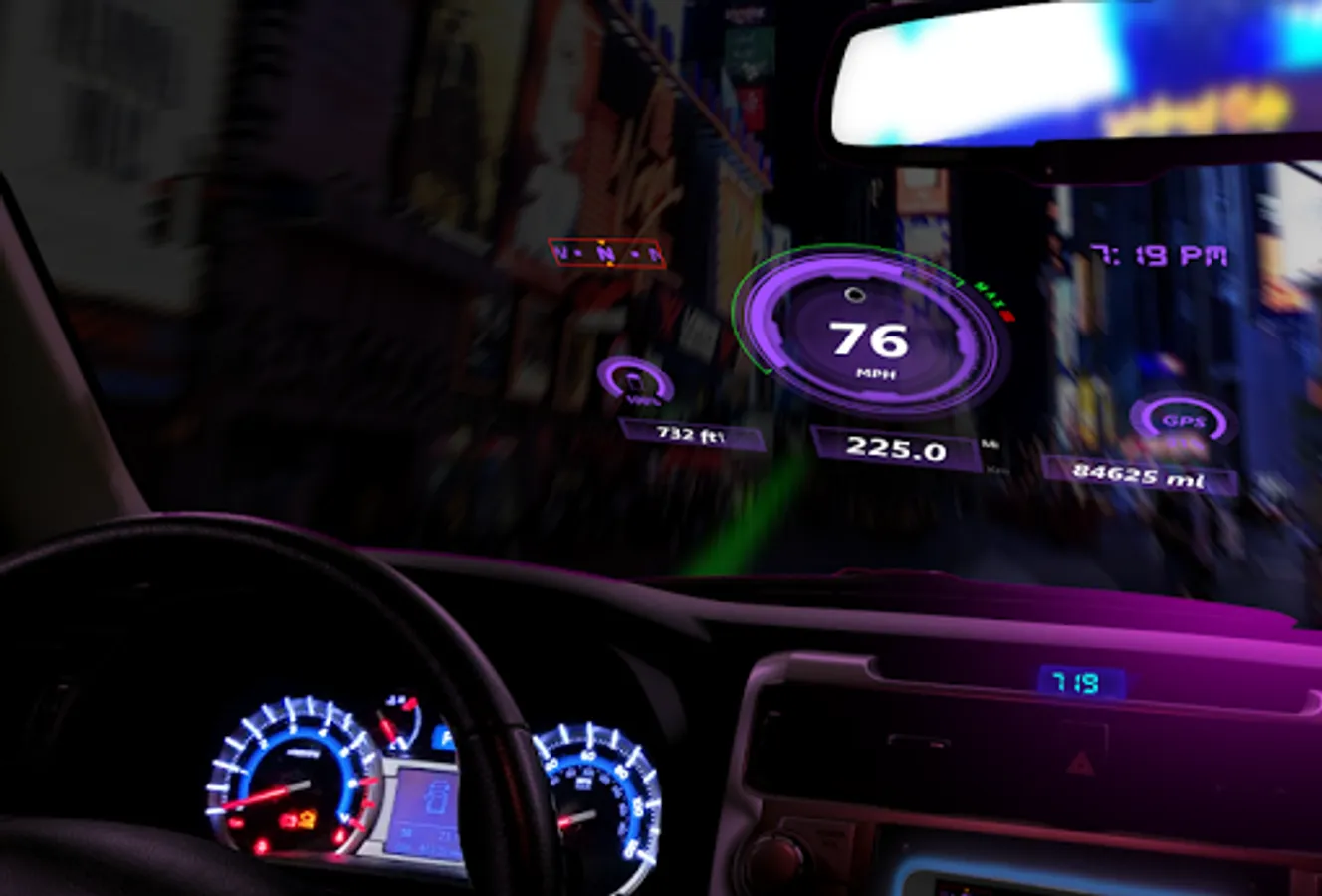 ✔️ Heads up display (HUD). All speedometers can be set to display a mirror-image so that you can reflect the screen off your windshield or specialized HUD display.