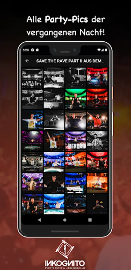 You will be the first to find out when the next party is going to take place and benefit from great promotions. With our vouchers you save money at the event. So that you can remember the great evening the day after, we provide all party pics in the app.
