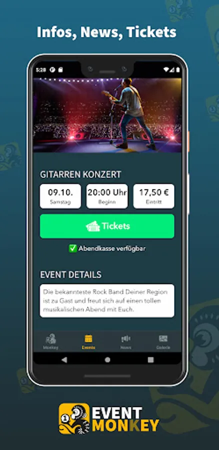 Whether it's a concert, sports event or your favorite event - with the Eventmonkey app you have all your tickets in one place!