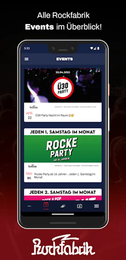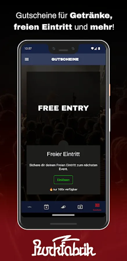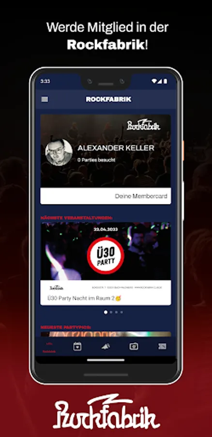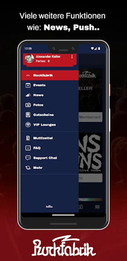 Lade dir unsere Rockfabrik App und werde Mitglied in der Rockfabrik.